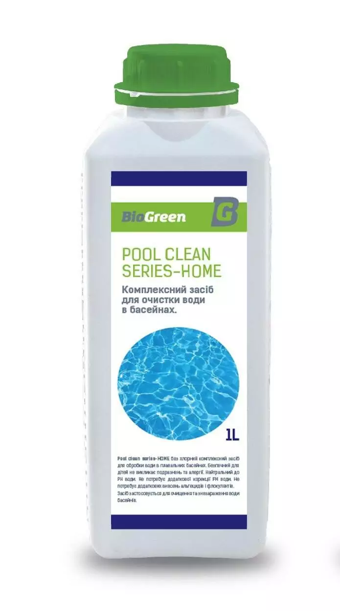 Pool clean series-HOME, це без хлорний універсальний рідкий засіб для комплексної обробки води в плавальних басейнах. Безпечний для дітей не викликає подразнень та алергії. Нейтральний до РН. Безпечний для людей та тварин. Не має подразливої дії на органи дихання. Не подразнює слизову оболонку та шкіру. Не утворює у воді та повітрі токсичні сполуки. Не викликає корозії металів та руйнування інших поверхень. Безпечний при обслуговуванні басейнів.